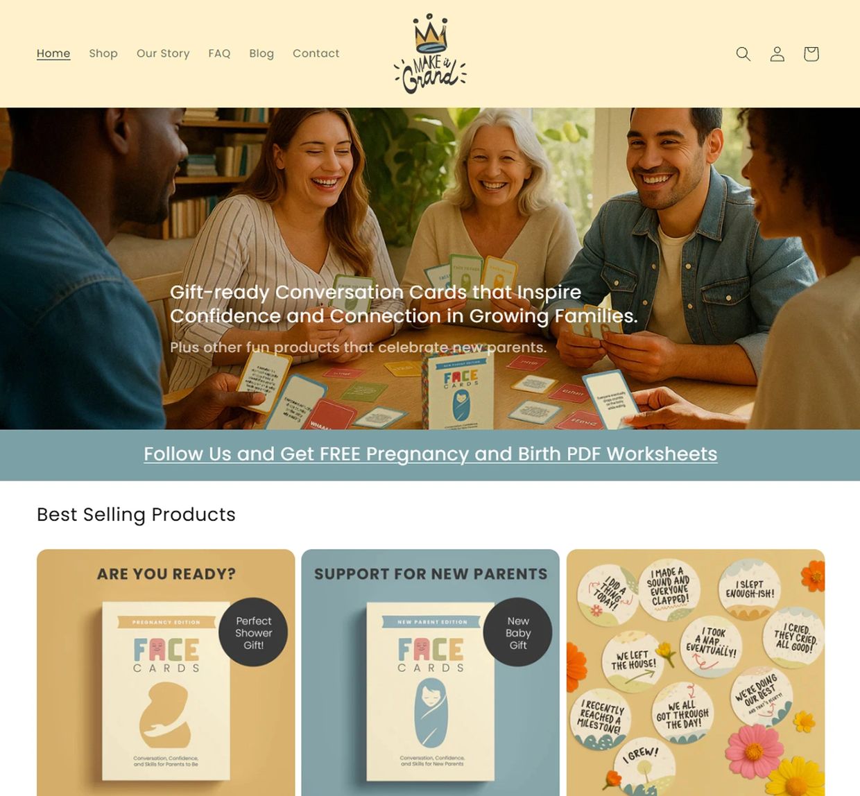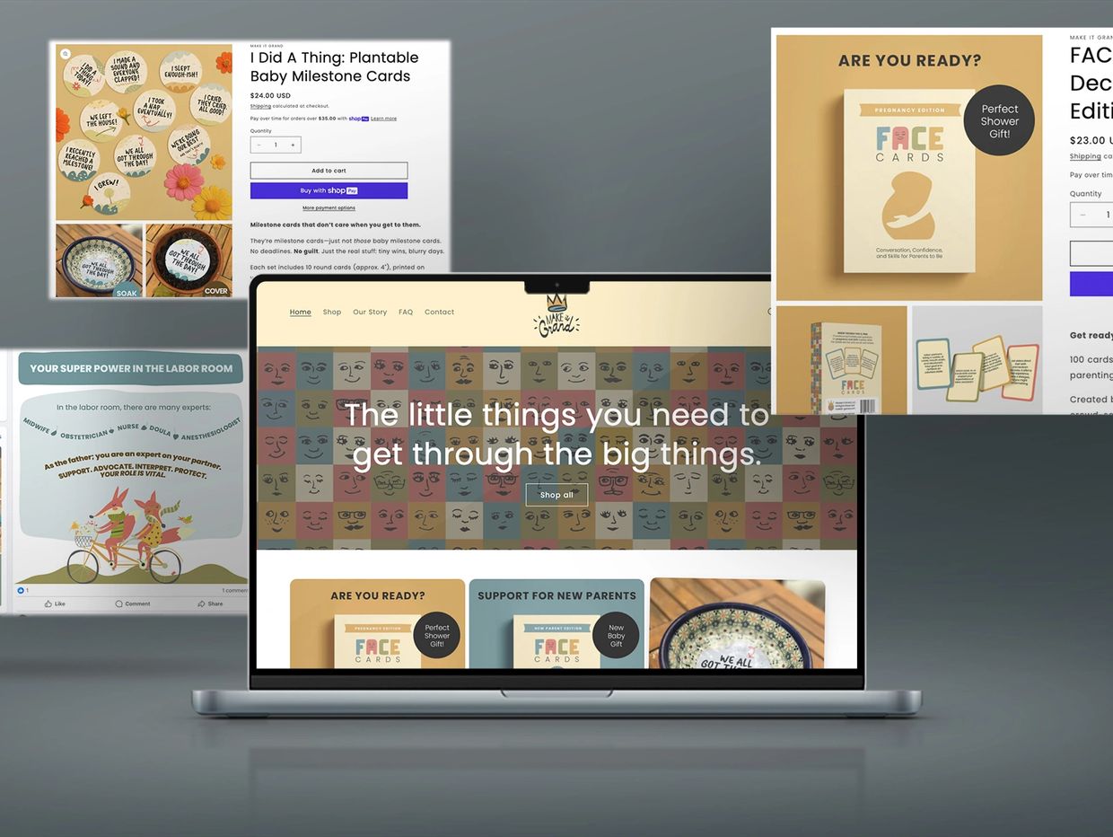 Developed the full visual identity, product design, and ecommerce experience for Make It Grand, a woman-owned brand creating thoughtful tools for new parents. Led design across packaging, Shopify storefront, and email flows, with a focus on clarity, warmth, and conversion. Built a cohesive content and marketing system to support launch across DTC, wholesale, and social. View Website