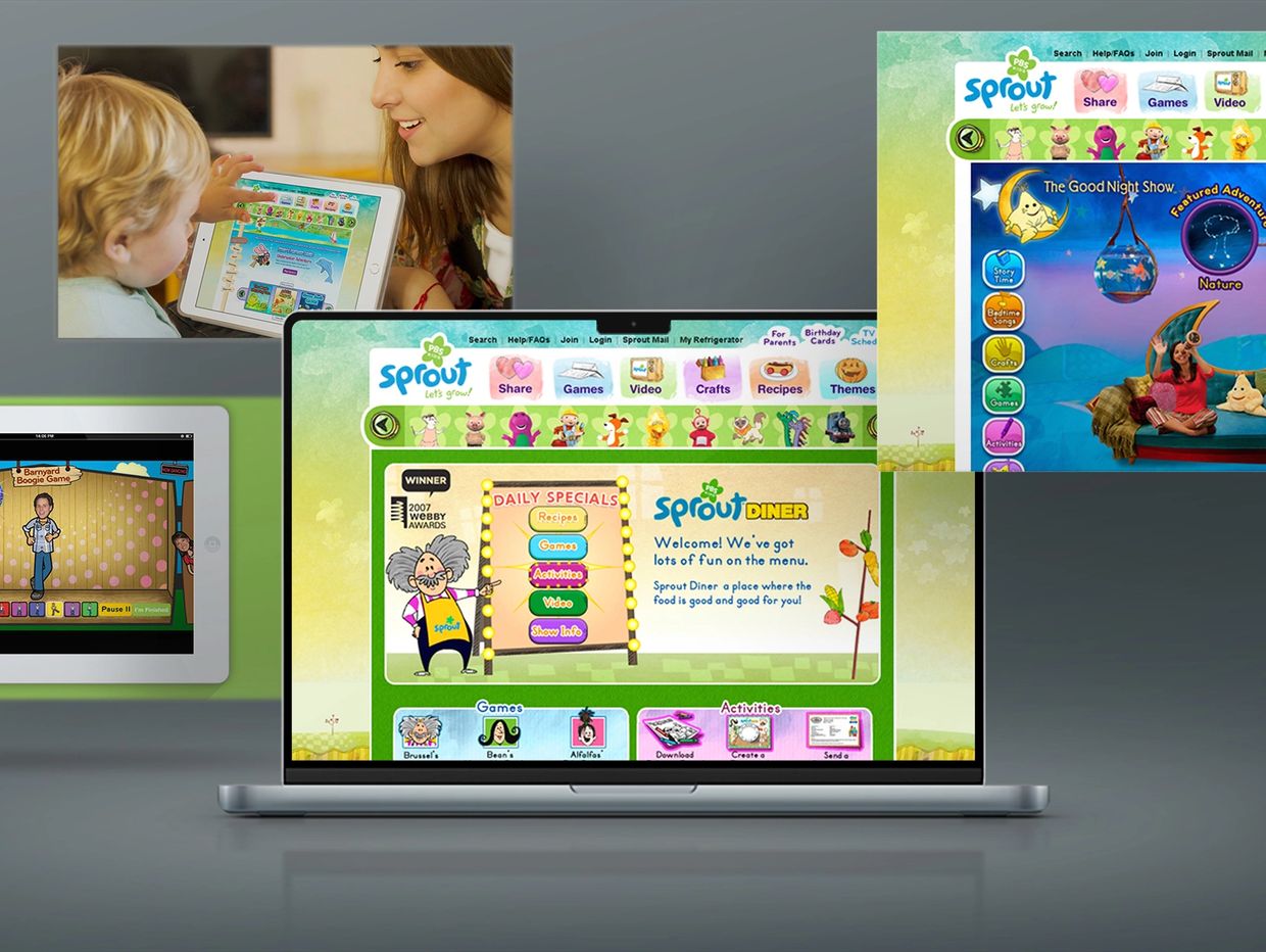 Created a vibrant, playful brand identity and interactive website for Sprout Diner, a plant-based concept designed to make healthy eating fun for kids. From bold visuals and custom illustrations to engaging UX design, every element was crafted to spark curiosity and support nutritious choices. The experience was honored with a Webby Award for excellence in digital design.
